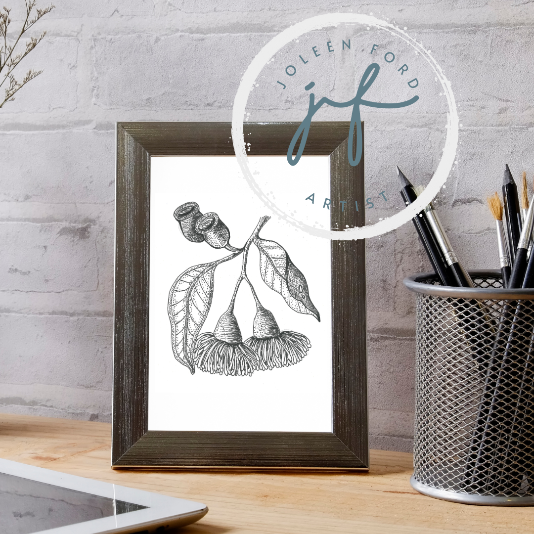 gum blossom Prints - an ink sketch using a stippled effect by artist Joleen Ford, all prints are printed on 300gsm high quality paper.