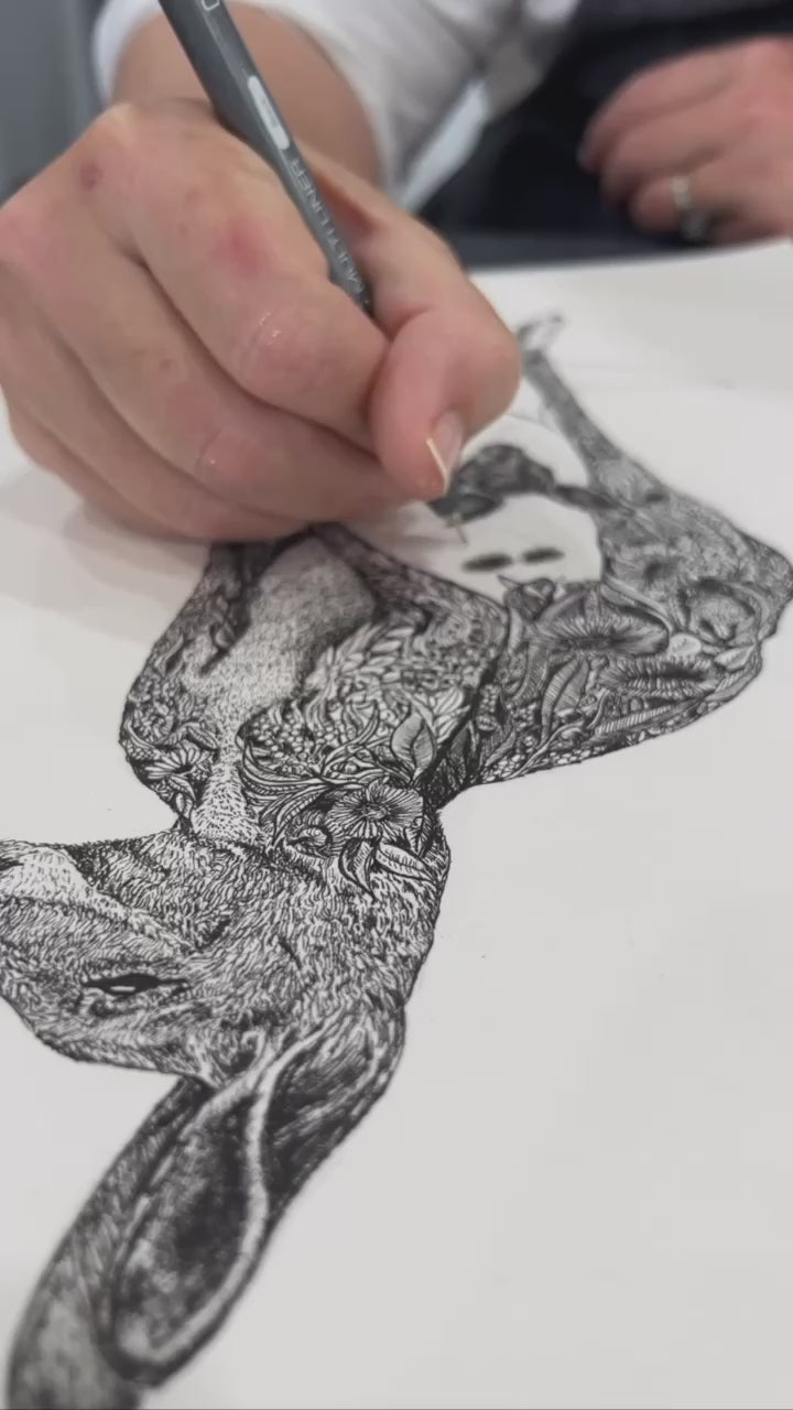 “Skippy” Floral detailed Kangaroo Prints - an ink sketch using a stippled effect by artist Joleen Ford, all prints are printed on 300gsm high quality paper.